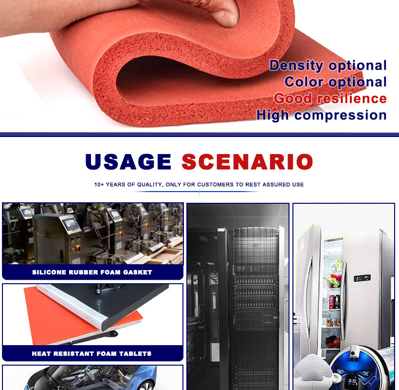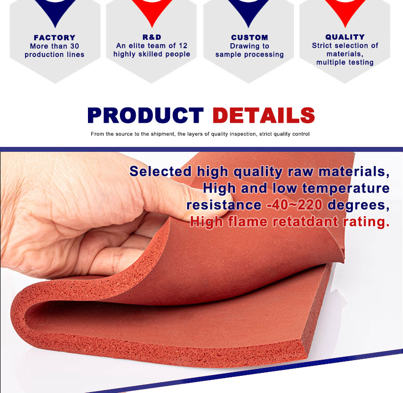 ファブリックシリコーンフォームボードはシリコーンフォームの一種で、耐圧縮性に優れています。ファブリックシリコンフォームボードは耐老化性、耐候性に優れており、衝撃吸収、緩衝、保護、断熱、防火に最適な素材です。プロセス: 高温プレス一体成形。サービス:カット、ロゴ追加、パンチ、缶裏面両面テープ等 物性:環境保護、難燃性、耐高温性等