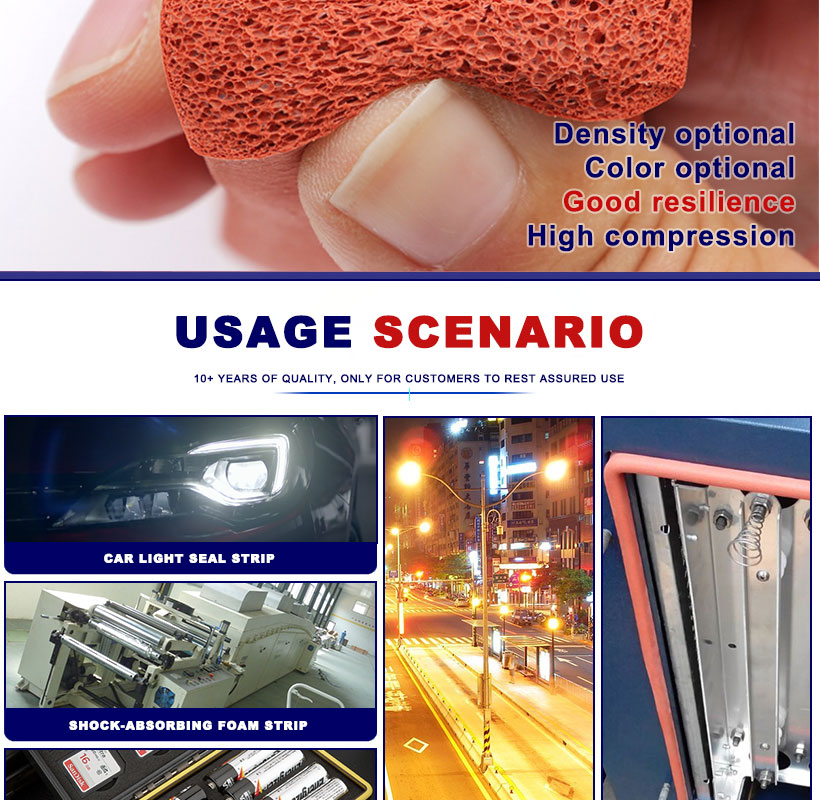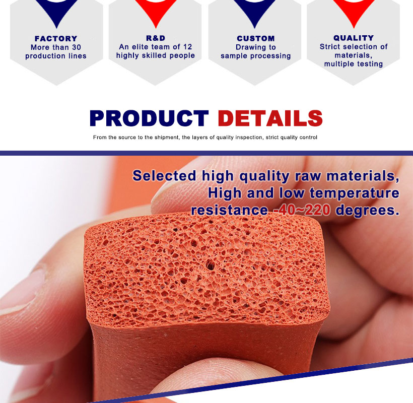シリコーン発泡ストリップは、高温耐性シリコーン発泡押出製品の一種であり、多数の小さな穴によって加硫プロセスで生産されます。シリコーン発泡ストリップ高温耐性、良好な弾力性は、質的な変化なしに高温で動作し続けることができます。